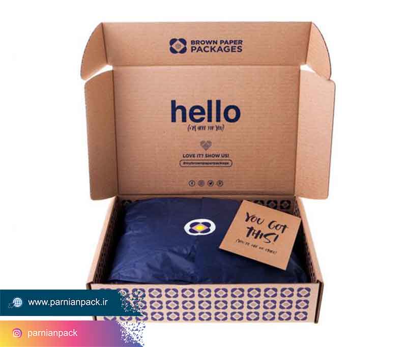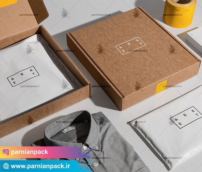 سهولت در حمل و نقل جعبه با پست و همچنین جلوگیری از وارد شدن هرگونه صدمه به محصول از ویژگی های جعبه بسته بندی پوشاک است.