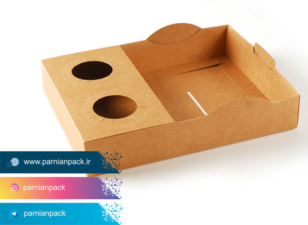 پک جا لیوانی با غذا بسته بندی بسیار کاربردی است و برای سرو و دلیوری انواع غذاهای سبک و فست فودی در کنار نوشیدنی گرم و سرد کاربرد دارند. این پک جا لیوانی معمولا از جنس مقوای کرافت و ایندربرد ساخته می شود.