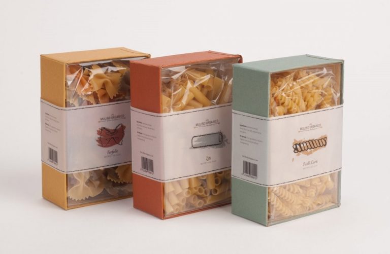 جعبه پنجره ای : برای نشان دادن فرم و رنگ پاستا می توان از جعبه پنجره ای استفاده کرد. این نوع بسته بندی همچنین کیفیت محصول و تازگی آن را هم